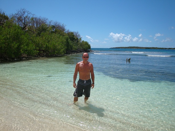 Finished filming the iguana I went back to just sitting under my new house, starring out into the Caribbean. It was then that a man and his daughter walked up to Casa Corona. I hadn't even noticed him on the beach. He came up to me and said "Your Curt, from After the Mortgage". I said, well yes....I am. He then told me that I was the reason he was on Vieques. He's been reading this blog and enjoys our exploits. I thanked him for the kind words. Having someone else enjoy what we love so much makes it all worth while. Hope you have a great time on the island Kenneth and Sydney.